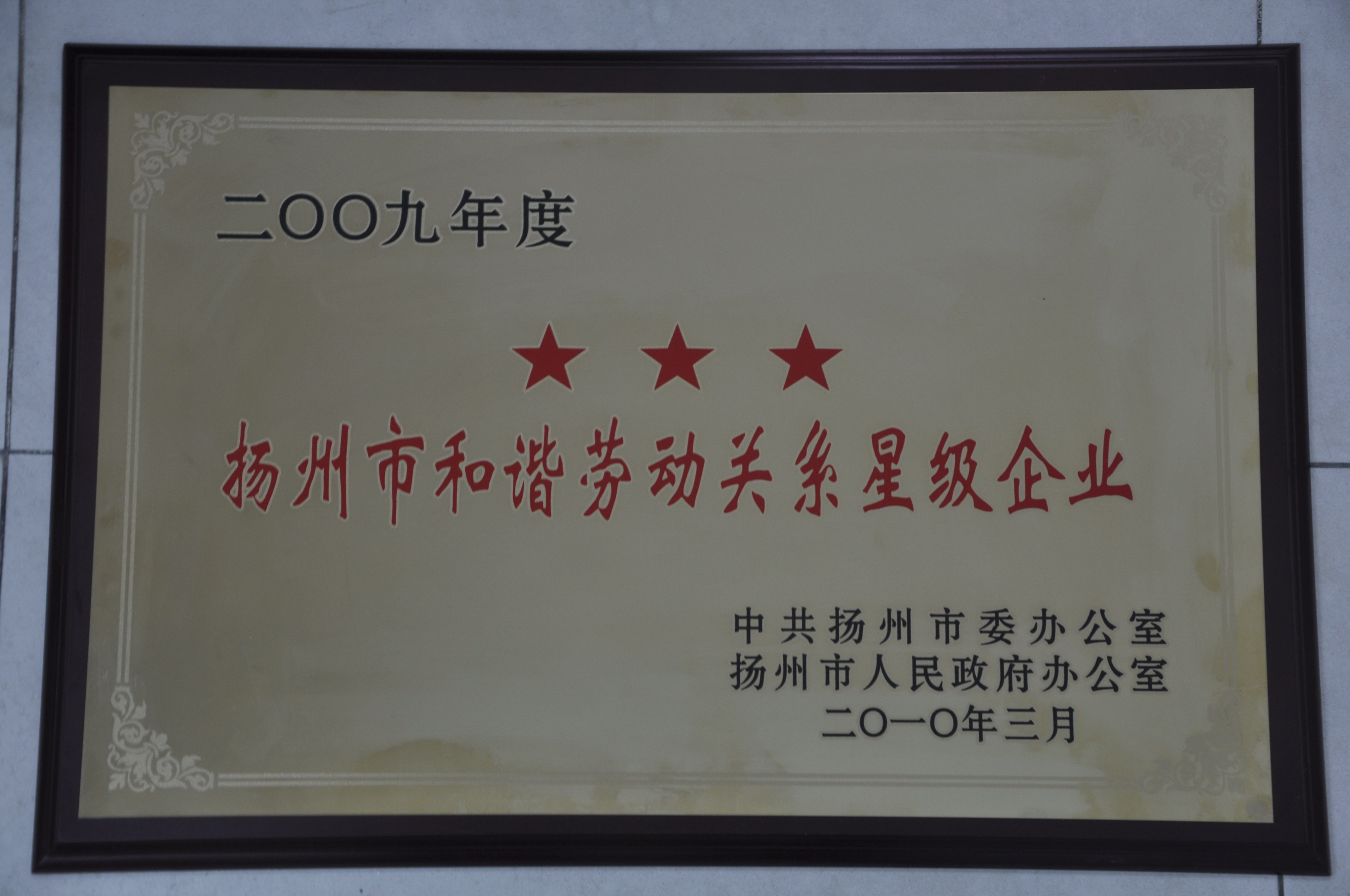 集團公司獲2009年揚州市和諧勞動關(guān)系“三星級企業(yè)”殊榮