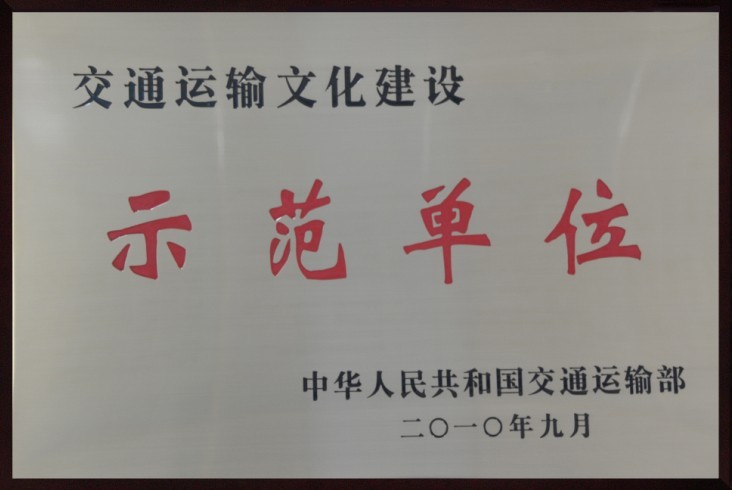 近日,我司接交通運(yùn)輸部交政法發(fā)[2010]476號文《關(guān)于命名第二批交通運(yùn)輸文化建設(shè)示范單位的決定》,公司被評為“交通運(yùn)輸文化建設(shè)示范單位”,此次評選江蘇省僅兩家單位入選。我司將珍惜榮譽(yù)、再接再厲、充分發(fā)揮示范帶頭作用,為開展交通運(yùn)輸文化建設(shè),發(fā)展現(xiàn)代交通運(yùn)輸業(yè)再立新功,再創(chuàng)佳績。