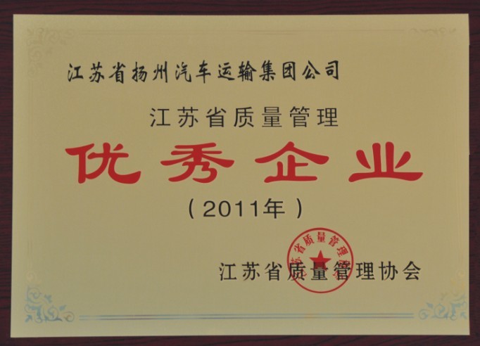 集團公司榮獲2011年江蘇省質(zhì)量管理優(yōu)秀企業(yè)稱號