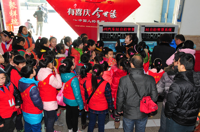 1月22日,來自揚州報業(yè)傳媒集團的60多名小記者來到揚州汽車站,觀看了GPS監(jiān)控中心、售票大廳和自助售票機工作情況,體驗了車站安檢、檢票工作,并采訪了揚汽集團總經(jīng)理、黨委書記吳忠俊……他們在現(xiàn)場親身體會了繁忙而和諧的2014年春運。