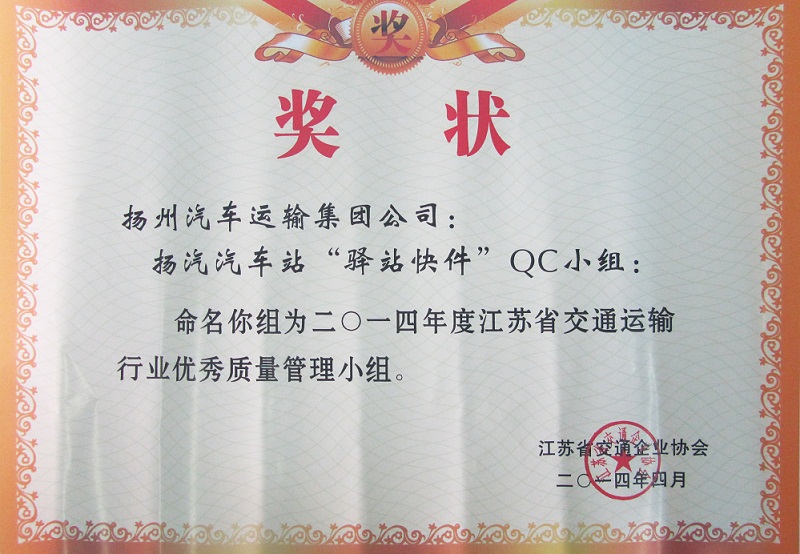 又訊:在此前進(jìn)行的江蘇省交通運(yùn)輸行業(yè)優(yōu)秀QC小組成果評選中,集團(tuán)公司被表彰為“省交通運(yùn)輸行業(yè)質(zhì)量管理小組活動優(yōu)秀企業(yè)”,揚(yáng)州汽車站“驛站快件”QC小組(成果《降低到達(dá)庫收發(fā)貨的誤差率》)與修理廠“技術(shù)攻關(guān)”QC小組(成果《汽車變速箱小車式托架的研制》)被評為“省交通運(yùn)輸行業(yè)優(yōu)秀質(zhì)量管理小組”。