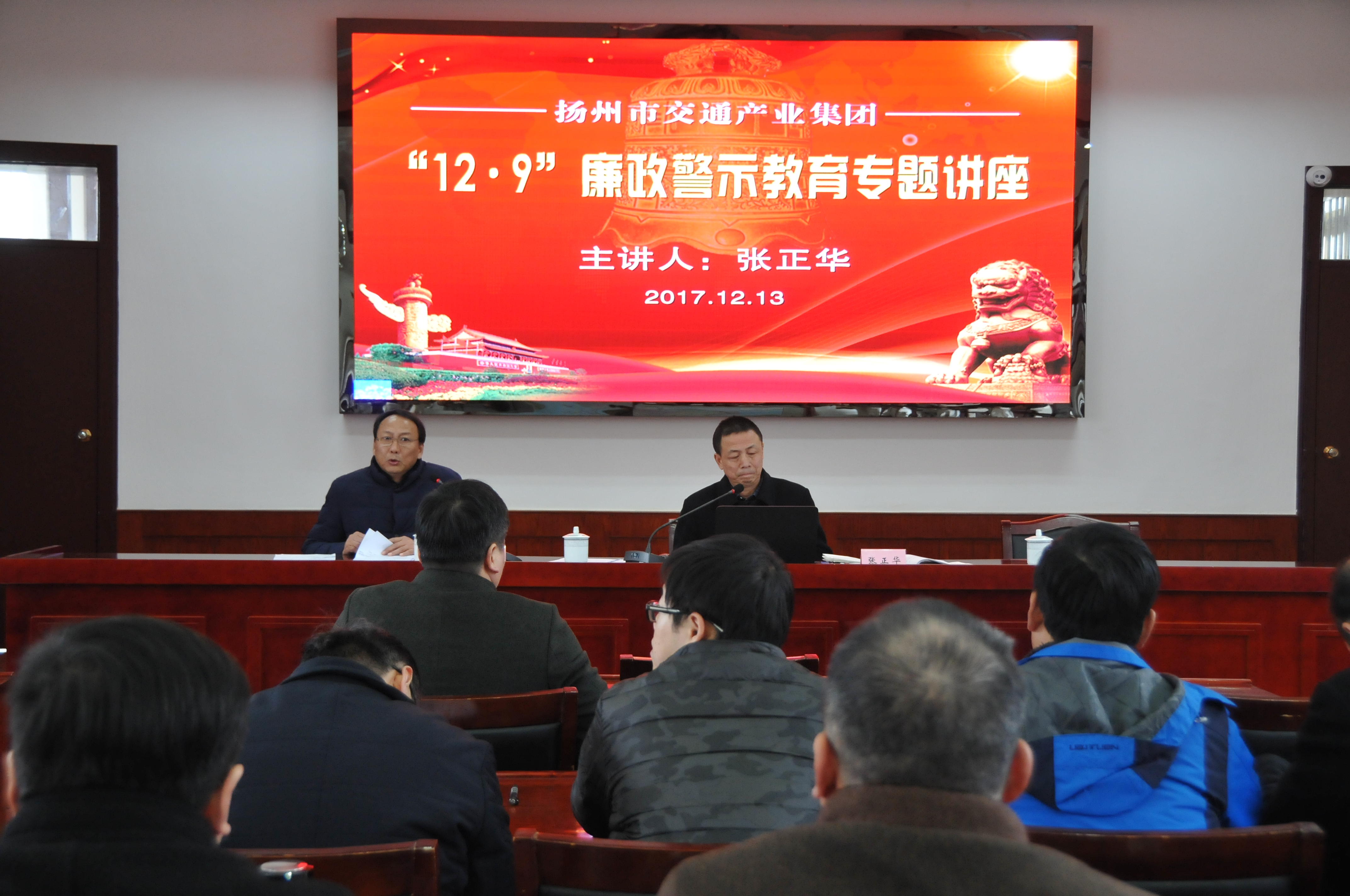 12月13日下午,市交通產(chǎn)業(yè)集團(tuán)在市級機(jī)關(guān)工委黨校舉辦“12.9”廉政警示教育專題講座。活動(dòng)由交通產(chǎn)業(yè)集團(tuán)黨委副書記王寧生主持,邀請市紀(jì)委第十派駐紀(jì)檢組組長張正華主講,系統(tǒng)內(nèi)黨員干部近百人現(xiàn)場聆聽講座。揚(yáng)汽集團(tuán)總經(jīng)理、黨委書記曹遠(yuǎn)志等班子成員及各部門、單位黨政負(fù)責(zé)人30余人參加活動(dòng)。