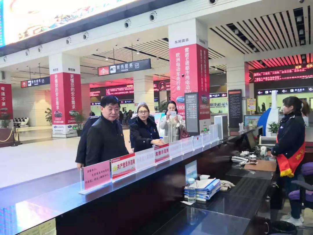 吳忠俊一行先后來到車站服務(wù)大廳、售票窗口等重點部位,查看了相關(guān)崗位面向服務(wù)對象、面向職工群眾亮身份、亮承諾、亮標(biāo)準(zhǔn)、亮作為情況。并通過座談會形式,與支部黨員、干部代表面對面交流,了解支部在推動中心工作開展、凝心聚力等方面的主要做法,聽取了一線生產(chǎn)經(jīng)營中存在的困難問題及有關(guān)意見建議。