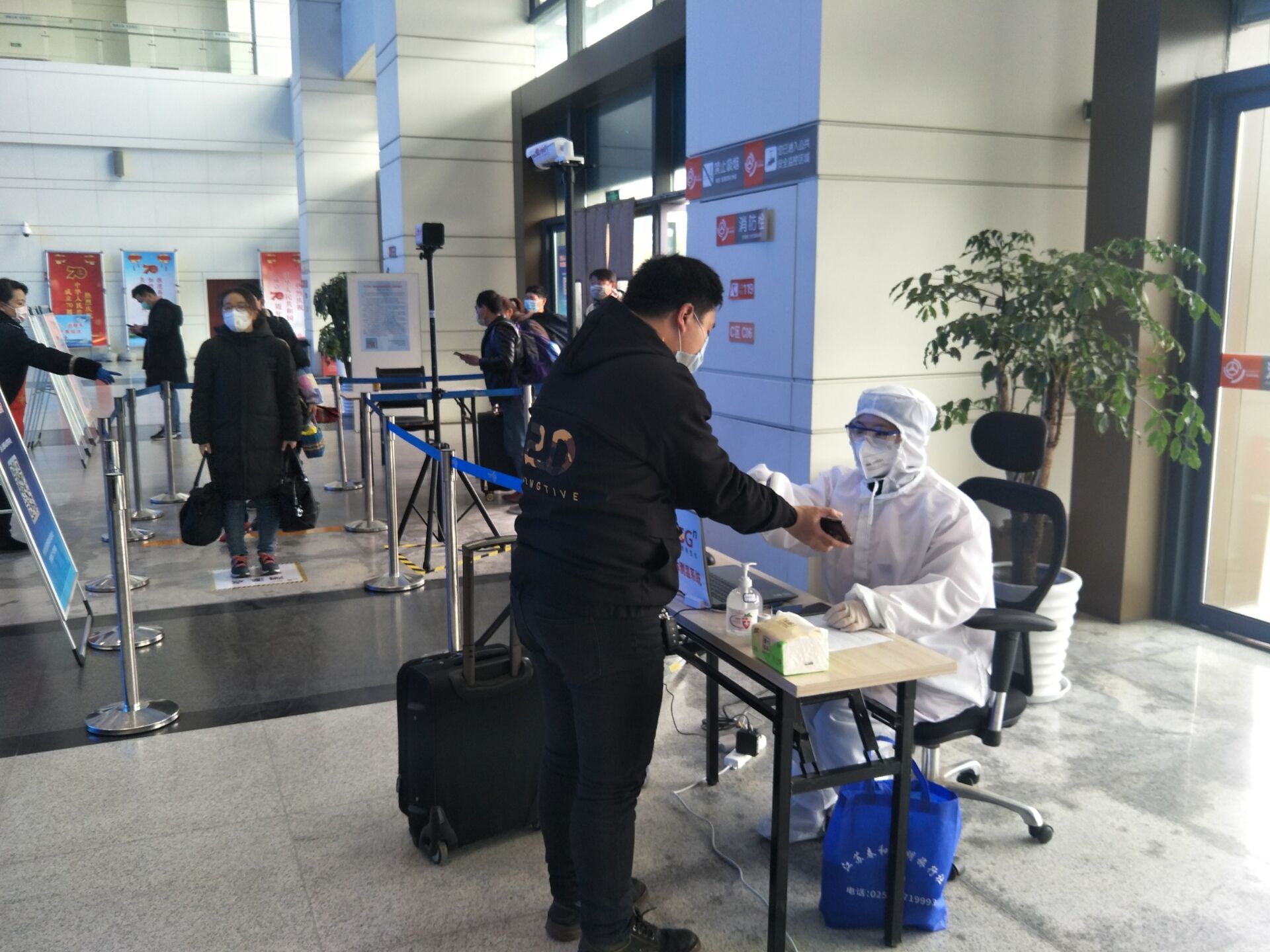 車站復(fù)工首日,進(jìn)站旅客需掃描二維碼,申報個人健康和出行軌跡信息,進(jìn)站排隊購票、安檢、候車需與他人保持1.5米以上距離,旅客上車后需分散入座,車站通過以上防控措施來全力保障廣大旅客在疫情防控期間安全順利出行。