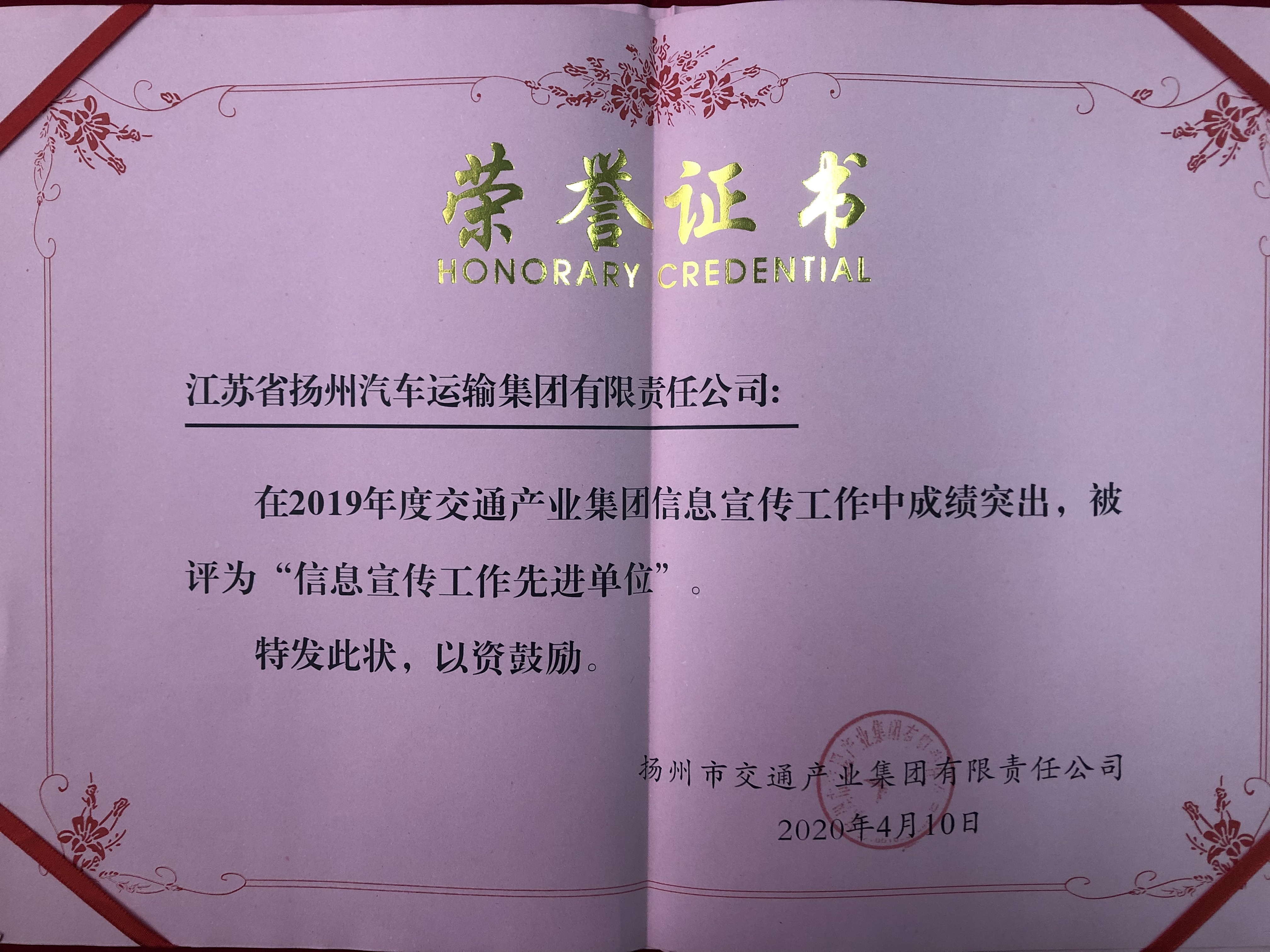 4月10日下午,市交通產(chǎn)業(yè)集團(tuán)召開信息宣傳工作會,會上表彰了2019年度信息宣傳工作中的先進(jìn)集體和個人,揚(yáng)汽集團(tuán)獲得“信息宣傳工作先進(jìn)單位”稱號;另有三名同志分別獲“信息宣傳工作先進(jìn)個人”和《揚(yáng)州交通產(chǎn)業(yè)集團(tuán)年鑒》(2018)優(yōu)秀撰稿二等獎。