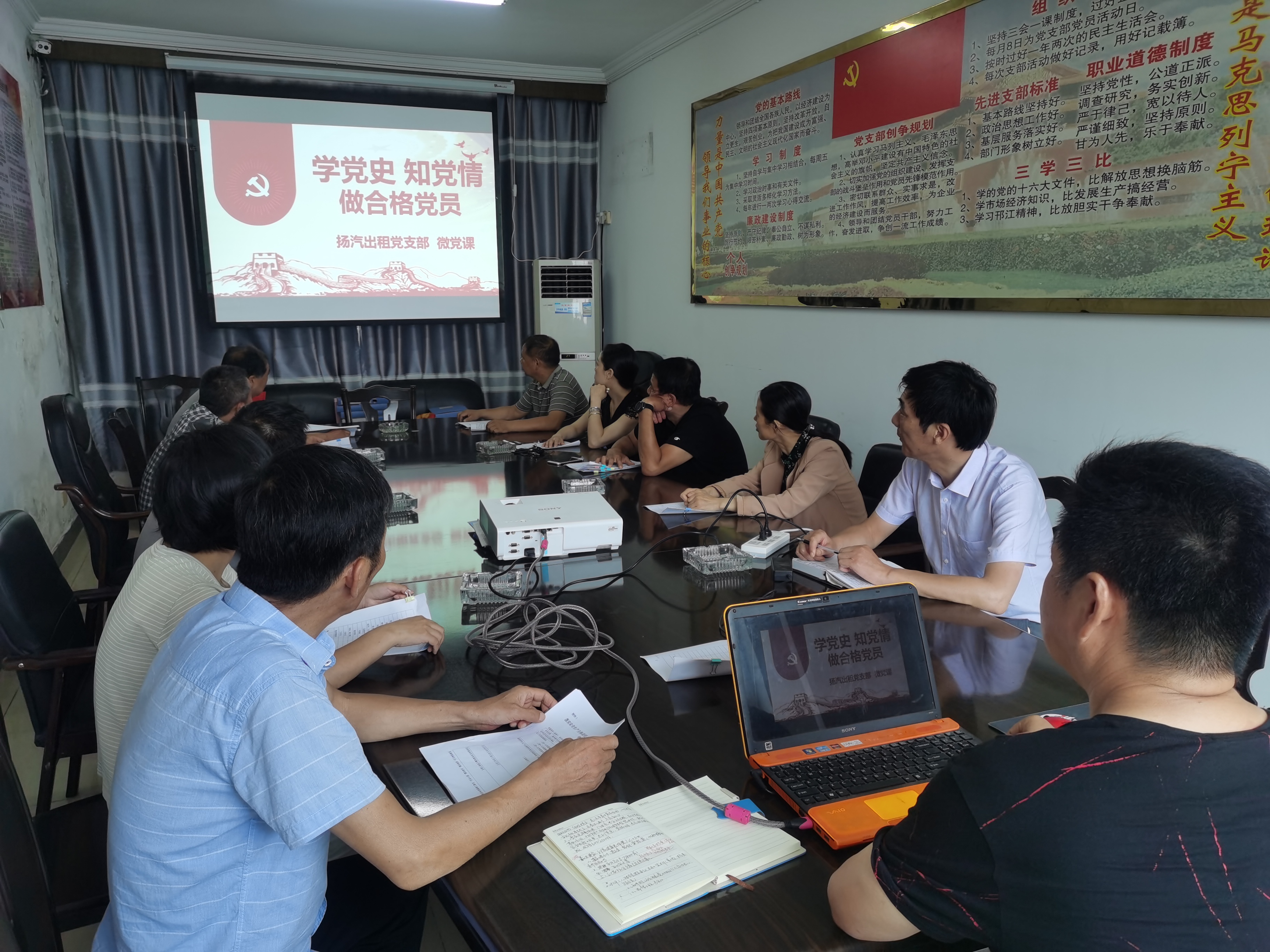 為紀(jì)念建黨99周年,“七一”前夕,揚汽出租黨支部組織在崗的13名黨員上了一堂《學(xué)黨史、知黨情,做合格黨員》主題微黨課。