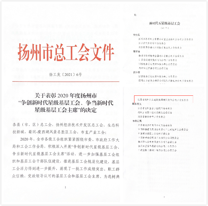 揚汽集團工會榮獲揚州市“新時代五星級基層工會”稱號