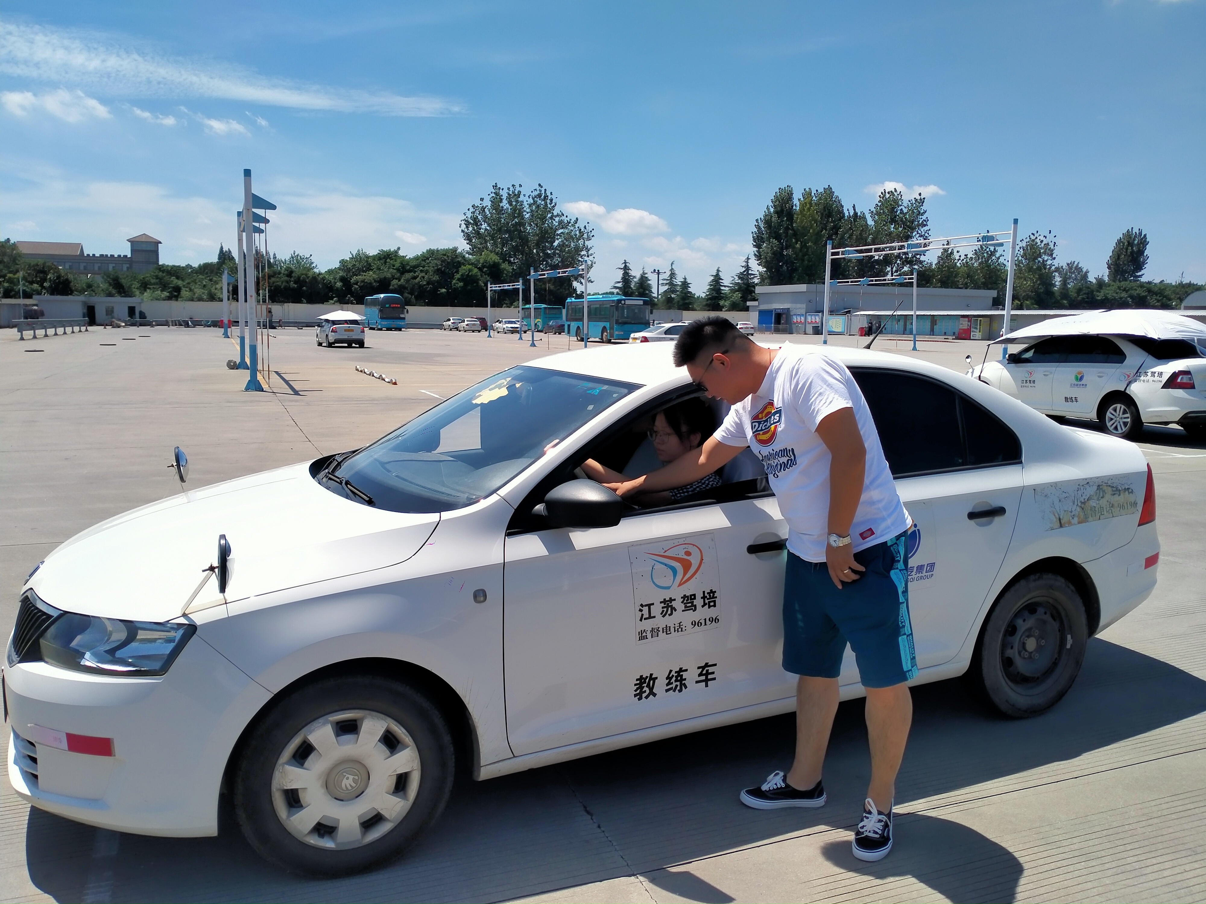 夏天教學(xué)是對教練員意志力、身體的雙重考驗(yàn)。為了保證訓(xùn)練安全,教學(xué)過程中教練員在車外指導(dǎo)學(xué)員從而導(dǎo)致車窗不能關(guān),空調(diào)開著也就失去了效果。這樣的高溫下,沒有人愿意待在車?yán),學(xué)員都是練習(xí)完下車找地方乘涼。開車的人都知道,待在炎熱的車廂內(nèi)是多么的煎熬,但是由于職責(zé)所在,我們的教練員都必須時(shí)刻保持高度警惕,寸步不離地堅(jiān)守在自己的崗位上。