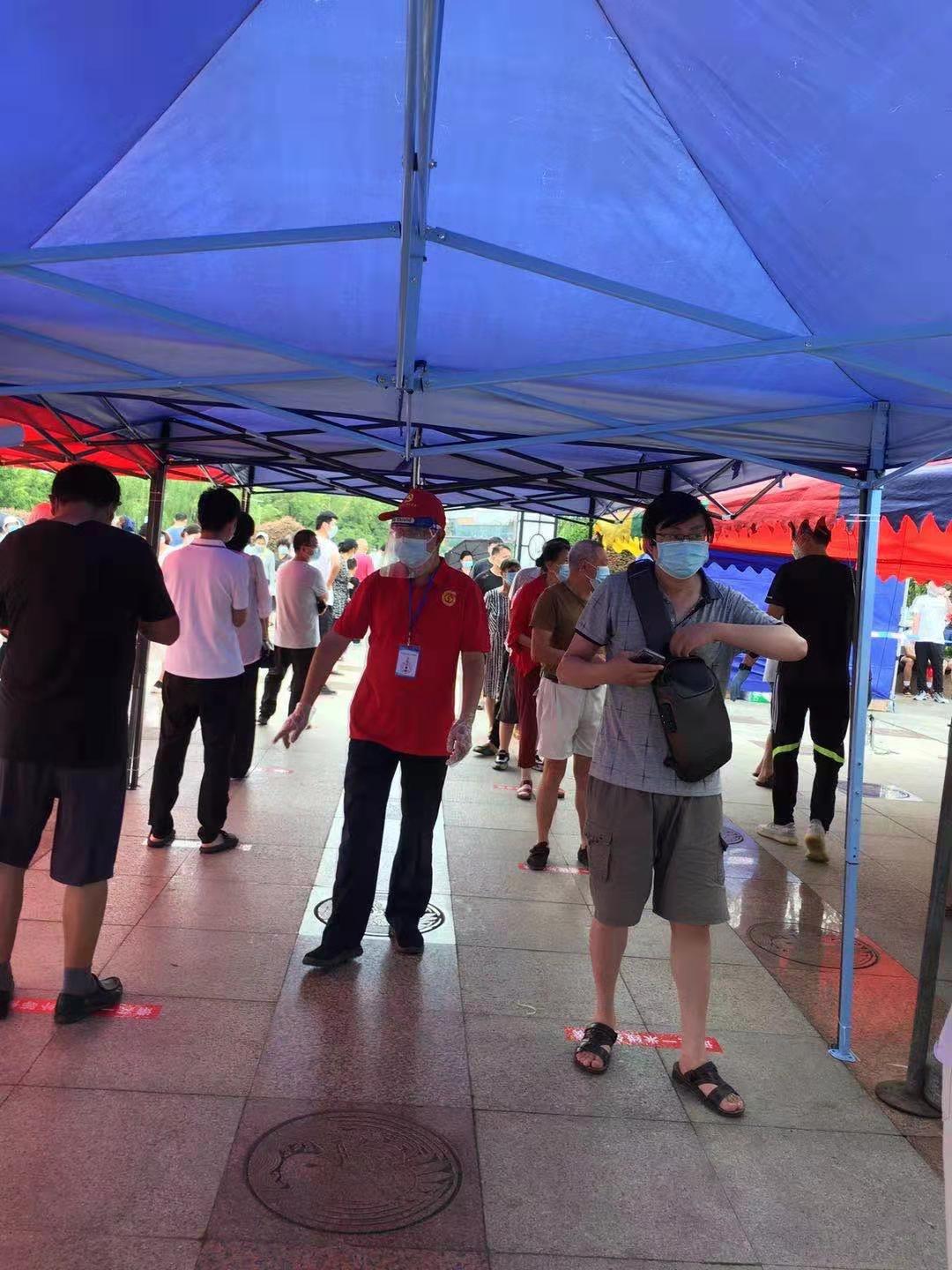 揚(yáng)州疫情爆發(fā),牽動(dòng)著每個(gè)人的心,黃建軍是揚(yáng)州站的值班站長,作為一名老黨員,主動(dòng)報(bào)名加入防疫阻擊戰(zhàn),于8月3日前往邗江區(qū)邗上街道進(jìn)行志愿服務(wù),深夜在臨時(shí)增加的來鶴臺廣場核酸檢測點(diǎn)貼地標(biāo),準(zhǔn)備各種用品,大、小垃圾桶等,協(xié)助社區(qū)做好準(zhǔn)備工作。第二天早上5點(diǎn),在五里社區(qū)來鶴臺廣場開展第三次核酸檢測志愿服務(wù)工作,負(fù)責(zé)4千多戶居民的秩序維護(hù)。8月7日,他又前往邗上街道蘭莊社區(qū)望月苑核酸檢測點(diǎn)參加志愿服務(wù),用平凡的堅(jiān)守,打造戰(zhàn)“疫”路上的最強(qiáng)盾牌。