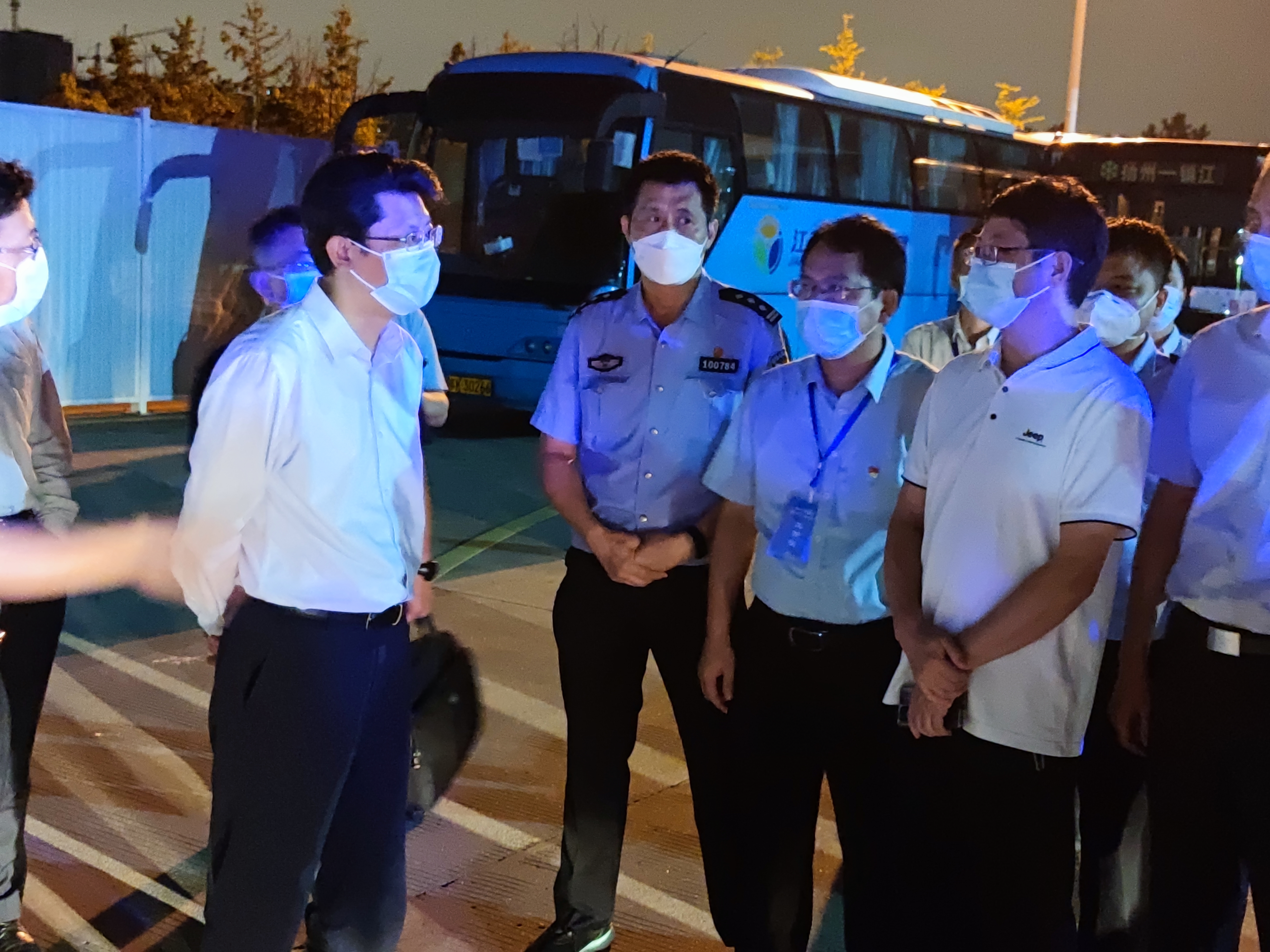 8月15日23時(shí)15分,揚(yáng)州市委副書記、代理市長(zhǎng)王進(jìn)健來到揚(yáng)汽集團(tuán)修理廠,慰問防疫交通轉(zhuǎn)運(yùn)專班工作人員。交通產(chǎn)業(yè)集團(tuán)黨委副書記、副董事長(zhǎng)、總經(jīng)理方璇智,副總經(jīng)理、揚(yáng)汽集團(tuán)黨委書記、董事長(zhǎng)龔宇峰全程陪同。