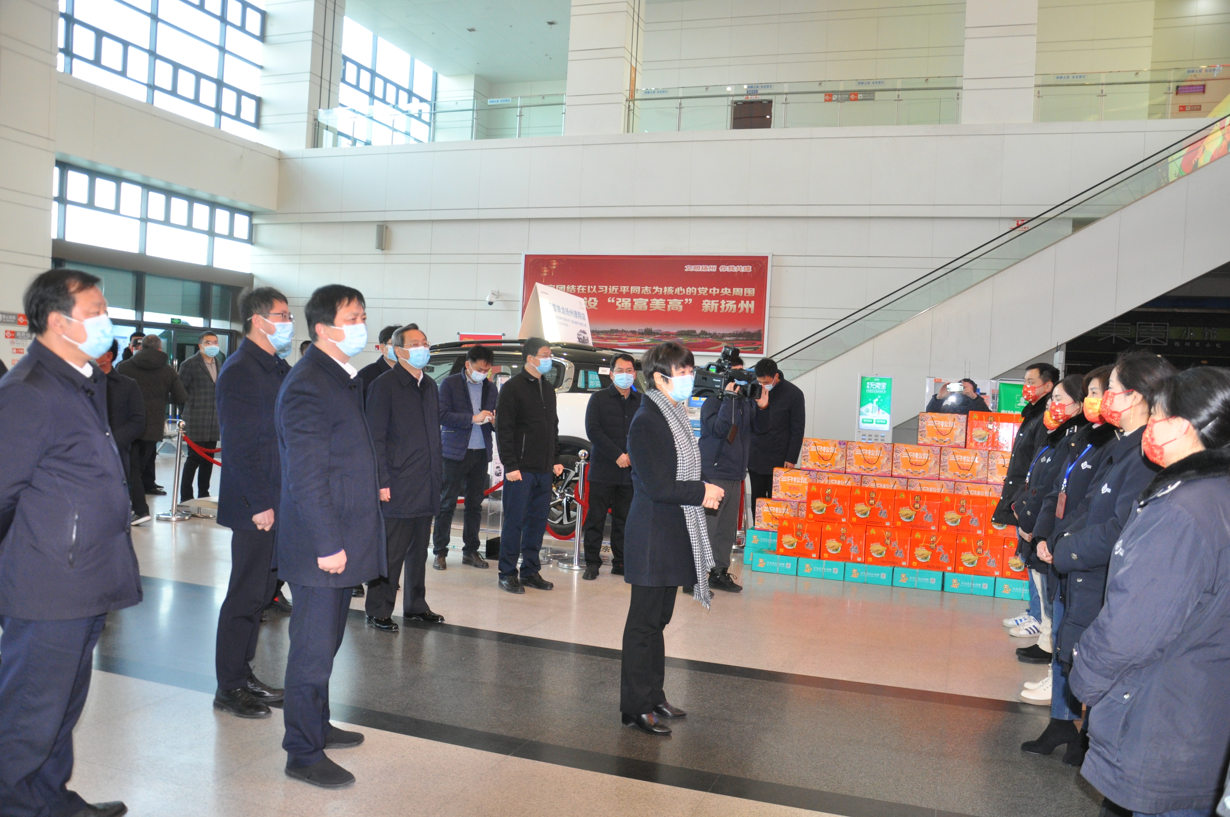 2月1日是大年初一,市委書記張寶娟一行來(lái)到西部客運(yùn)樞紐,檢查疫情防控工作,并看望慰問(wèn)奮戰(zhàn)在一線的工作人員,代表市委、市政府向他們表示誠(chéng)摯謝意并致以新春的美好祝福。市領(lǐng)導(dǎo)韓驊、張耀武,交通產(chǎn)業(yè)集團(tuán)黨委副書記、副董事長(zhǎng)、總經(jīng)理方璇智,交通產(chǎn)業(yè)集團(tuán)副總經(jīng)理、揚(yáng)汽集團(tuán)黨委書記、董事長(zhǎng)龔宇峰,揚(yáng)汽集團(tuán)總經(jīng)理談衛(wèi)國(guó)等及相關(guān)負(fù)責(zé)人陪同檢查。