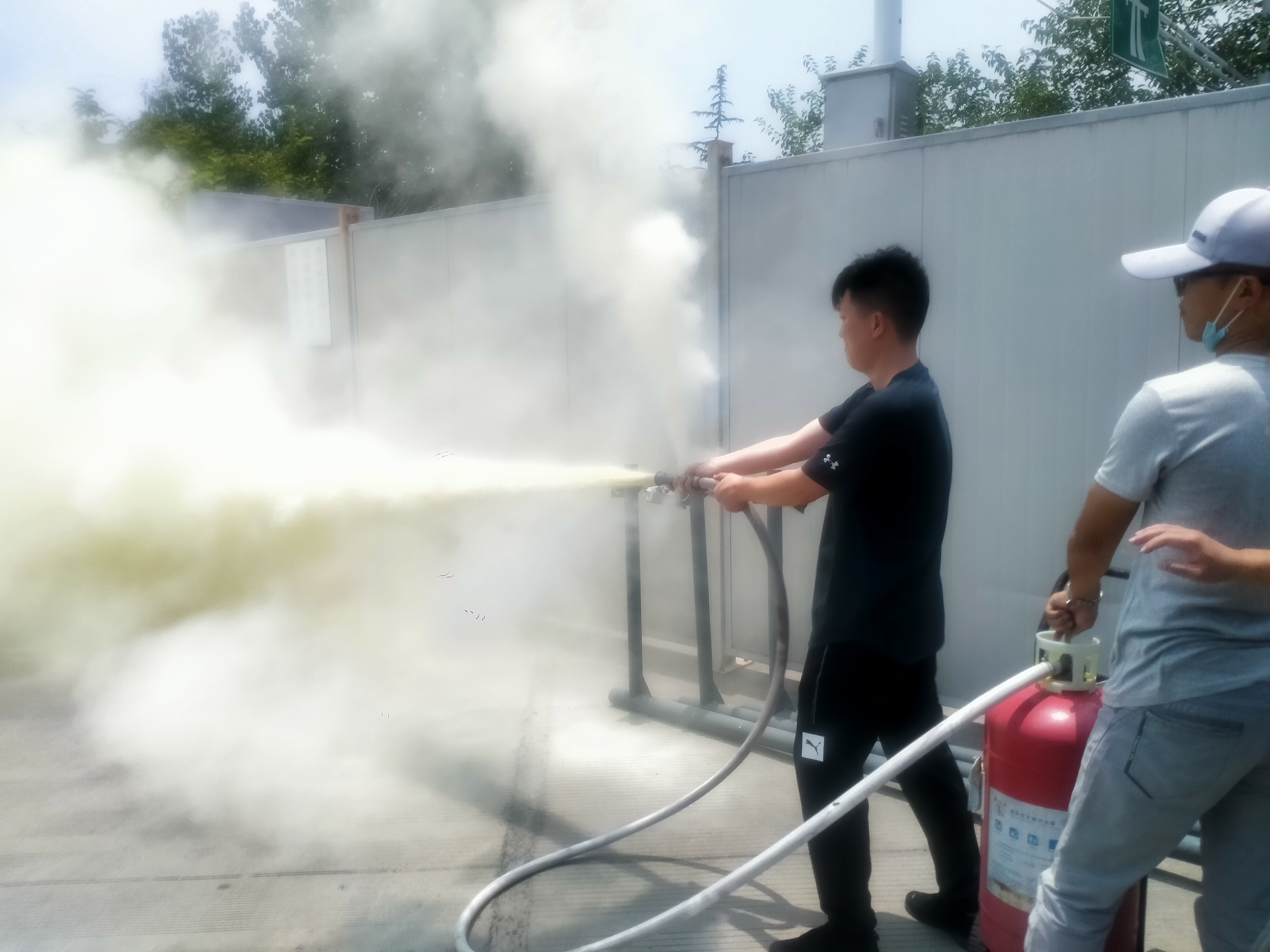 此次演練為強化場地消防安全,做好隨時處置場地火情的準備,特別準備了一具35KG手推式滅火器進行現(xiàn)場演示。隨后,在工作人員的統(tǒng)一指導下,參演人員紛紛體驗了滅火器的實際操作以及如何引導場地人員疏散,切實增強了員工的應(yīng)急技能。