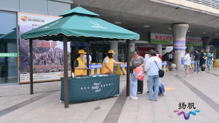 國慶長假期間,為營造文明旅游的良好環(huán)境,讓來揚(yáng)游客體驗優(yōu)質(zhì)旅游服務(wù),揚(yáng)州旅游集散中心成立志愿服務(wù)小隊,積極開展旅游志愿服務(wù)活動,分別在揚(yáng)州火車站出站口、高鐵站出站口設(shè)立“微笑揚(yáng)州”服務(wù)窗口,為下車的游客提供線路指引、旅游咨詢等服務(wù)。