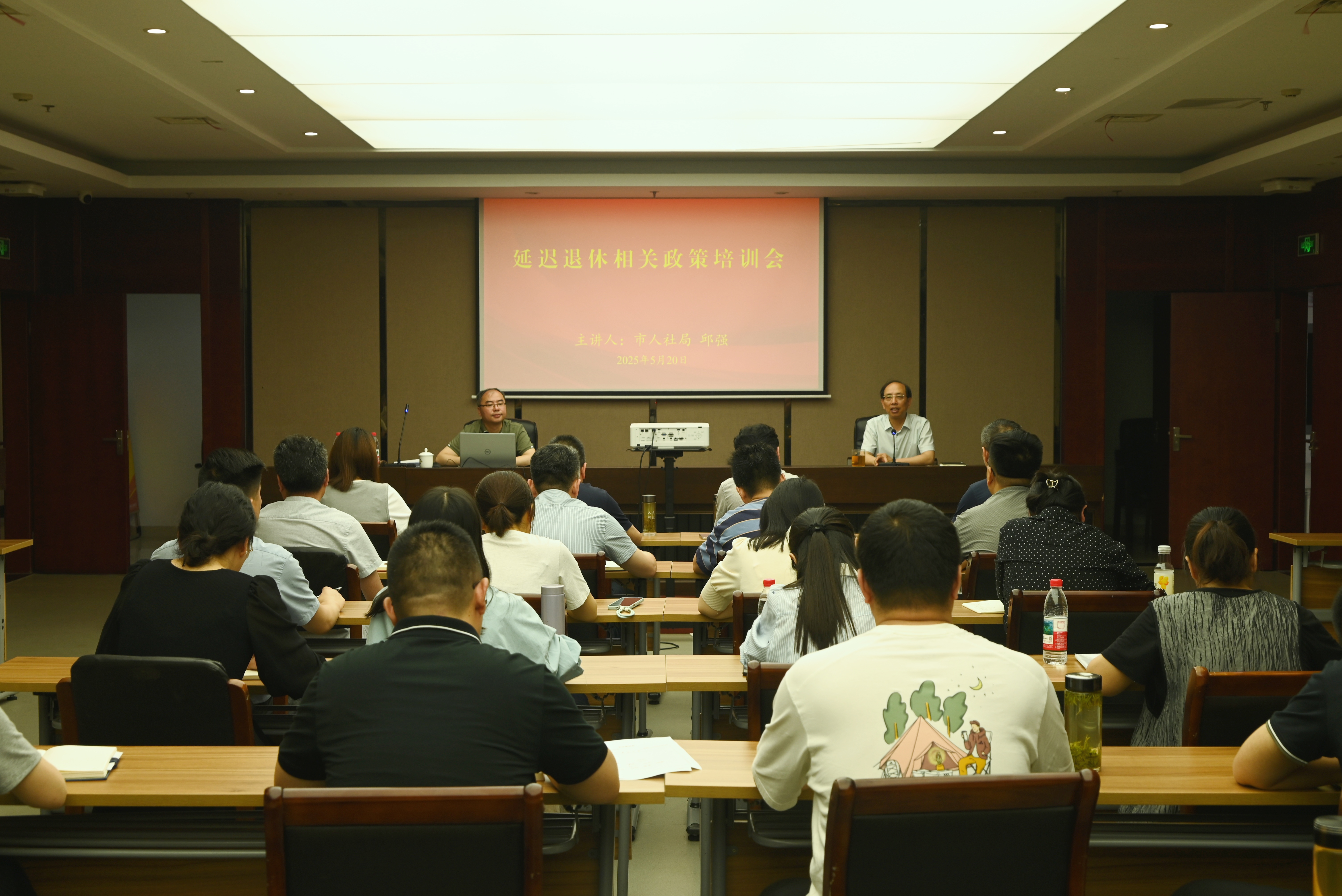 為進一步貫徹落實漸進式延遲法定退休年齡相關政策,確保全體員工能夠清晰理解政策內(nèi)容及實施細則,5月20日,揚汽集團組織開展“延遲退休政策”專題培訓;顒友埵腥松缇逐B(yǎng)老處二級主任科員邱強授課,集團黨委副書記、紀委書記、工會主席陳家宏主持。集團各部室、單位相關人員、青年骨干、后備干部等40余人參加培訓。