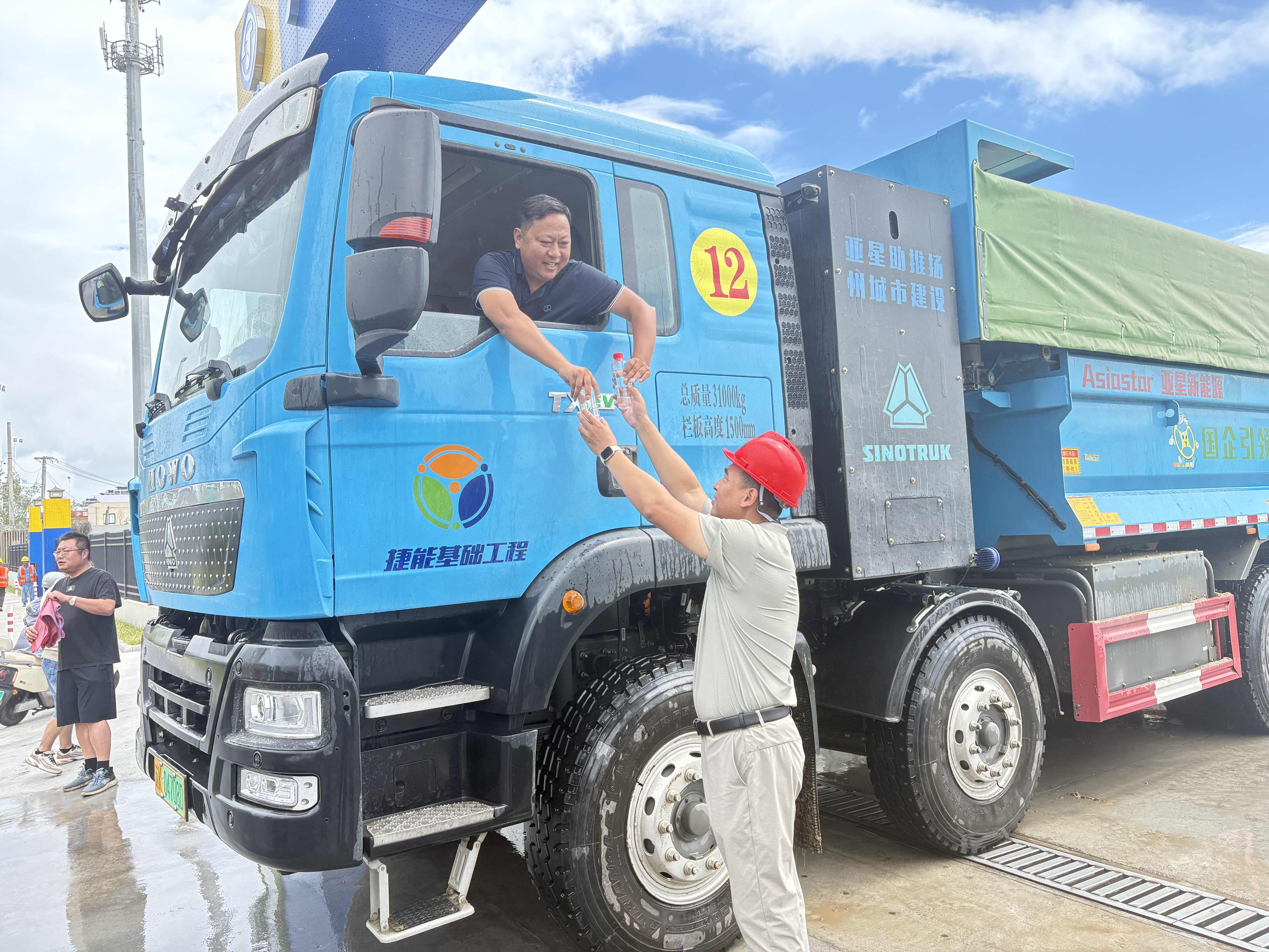 連日來(lái),揚(yáng)州持續(xù)高溫。面對(duì)酷暑考驗(yàn),揚(yáng)州捷能基礎(chǔ)工程有限公司的渣土車運(yùn)輸駕駛員們?nèi)詧?jiān)守施工一線,全力保障生產(chǎn)。為切實(shí)維護(hù)一線駕駛員的身心健康與作業(yè)安全,公司聯(lián)合新能源車輛廠家組成慰問(wèn)小組,開(kāi)展了“送清涼”活動(dòng),為在高溫下辛勤作業(yè)的駕駛員們送去關(guān)懷與清涼。